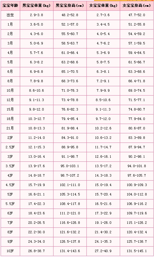 小孩身高体重成长图